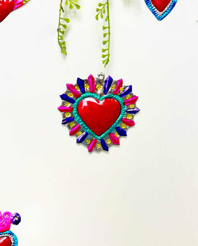 Hand-painted metal votive heart, Mexican craftsmanship, symbol of devotion and protection. Ideal gift.